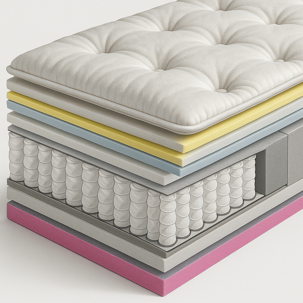 Perimeter Zone: Smaller, heavy-gauge coils around the edges to bolster side support and prevent roll-off - Durable Base Foam Reinforcement